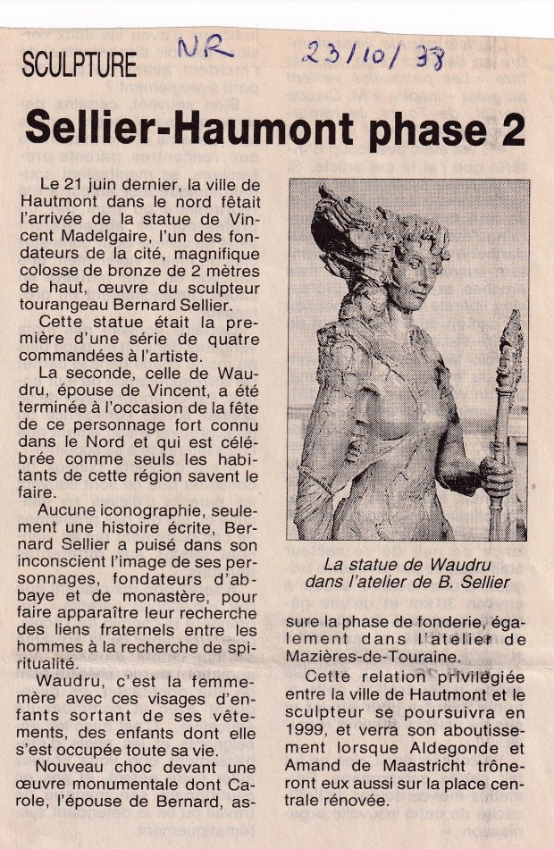 Création de Saint Vincent Madelgaire, Sainte Waudru, Sainte Aldegonde et Saint Amand, fondateurs de la ville (moyen âge, contemporains du roi Dagobert). Ces 4 monuments, d’une hauteur d’environ 2,10 m, sont en bronze, et sont installés sur la place de l’église de Hautmont.